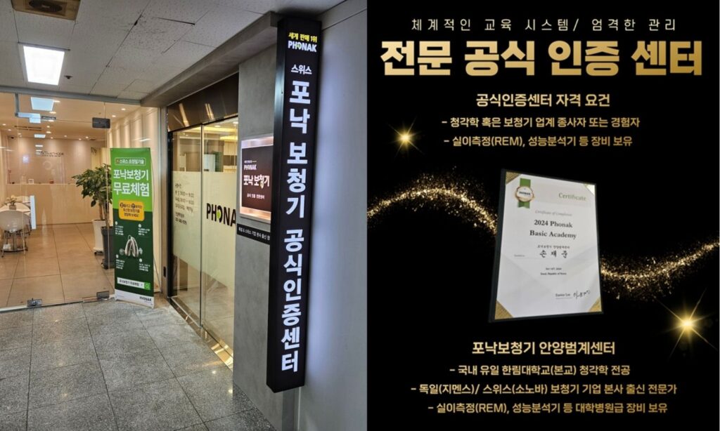포낙보청기 안양범계센터는 포낙 공식 인증센터로서, 본사 기준의 교육·검증·장비 요건을 갖추고 청각전문가가 직접 정확한 절차와 관리로 결과를 책임집니다.